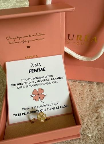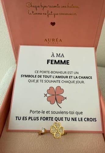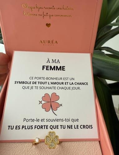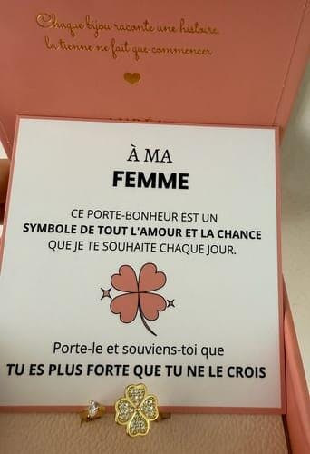 "An meine Frau, dieser Glücksbringer ist ein Symbol all der Liebe und des Glücks, die ich dir jeden Tag wünsche. Trage ihn und erinnere dich daran, dass du stärker bist, als du glaubst."