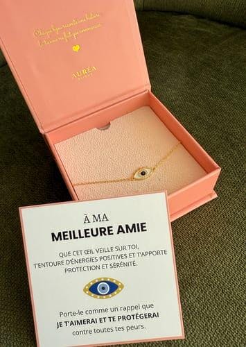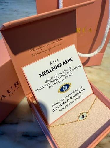 "An meine beste Freundin, möge dieses Auge über dich wachen, dich mit positiver Energie umgeben und dir Schutz und Gelassenheit bringen. Trage es als Erinnerung daran, dass ich dich lieben werde und dir werde dich vor all deinen Ängsten schützen."